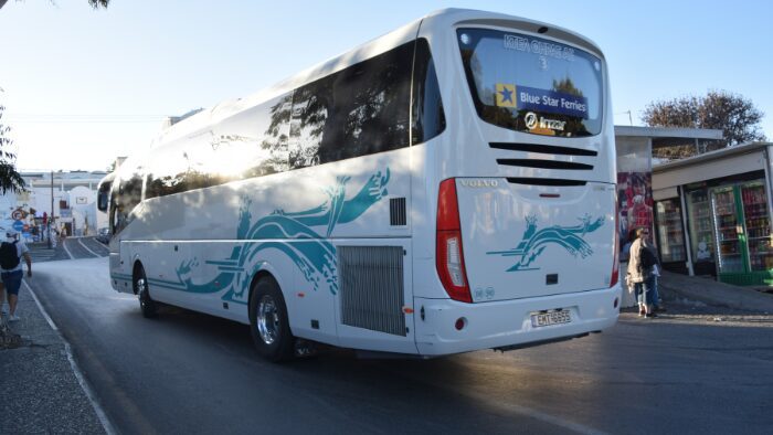 The KTEL bus is Santorini’s public bus network. It runs from the Fira Bus Terminal, located near the main square, and connects most major villages, including Oia.