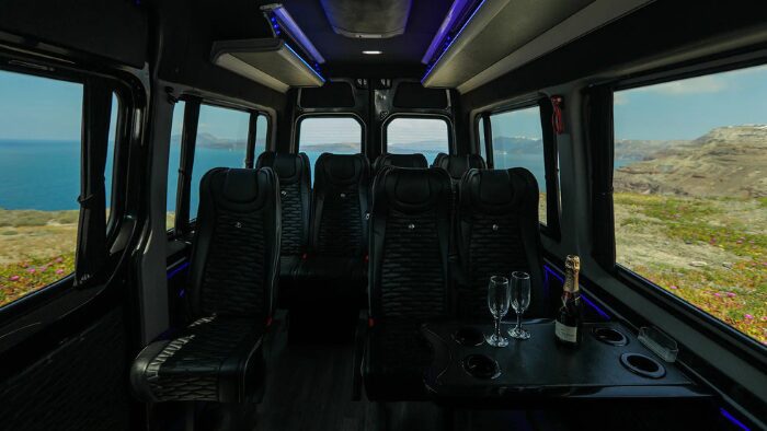 Services like My Santorini Transfer operate a fleet of Mercedes-Benz sedans, Range Rover SUVs, and Sprinter minibuses, covering groups of 1 to 17 passengers.